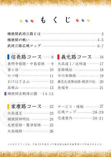 桶狭間武将三路とは 桶狭間の戦い 武将三路広域マップ 3 4-5 6-7 8 9 10 11 12 13 14-15 22 23 24 25 26 サービス・情報 広域マップ 交通案内 27 28-29 30-31